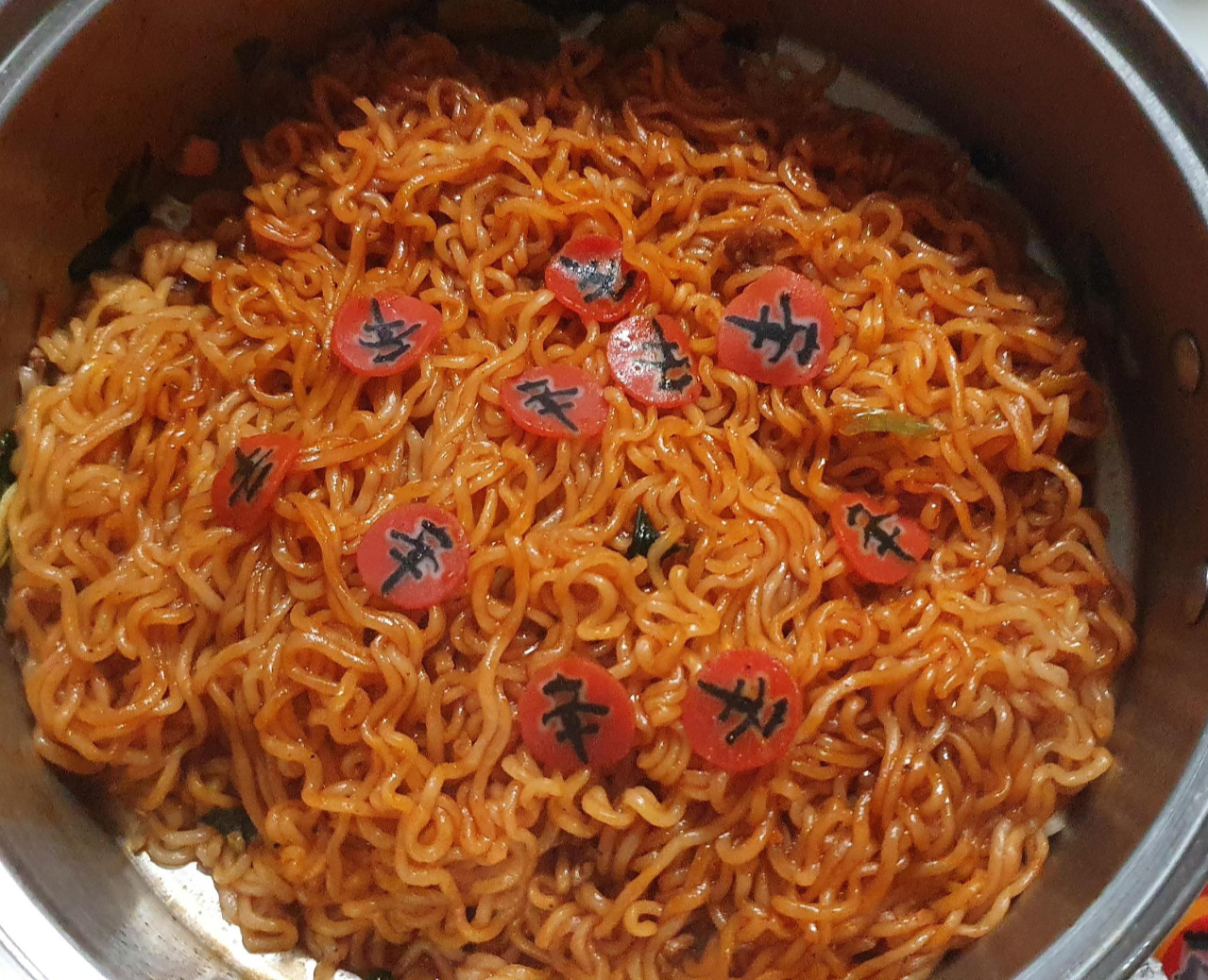 너무 간단하죠?! 그리고 플래이팅을 위해 어묵을 위에 올렸습니다. 너무 귀엽지 않나요? 어묵에다가 이렇게 마크를 했다는 게 기발하고 누가 봐도 신라면 제품인 걸 알 수 있네요.